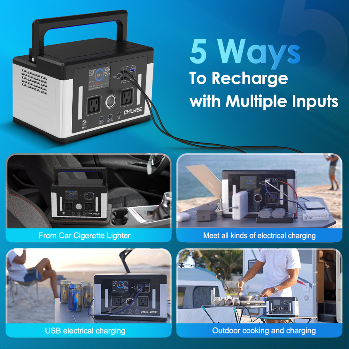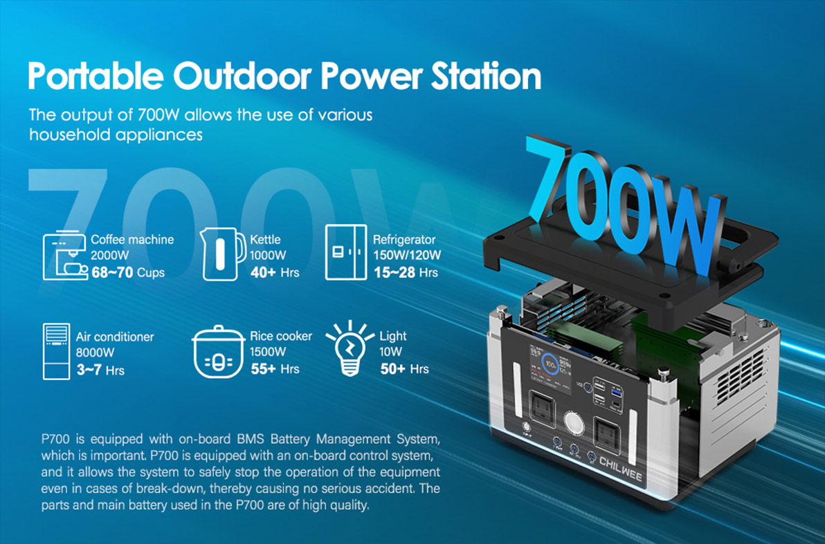 Lorsque vous invitez des amis à camper à l'extérieur, vous avez besoin d'un générateur solaire portable de 700 W pour vous fournir l'électricité, l'éclairage, le barbecue, etc.