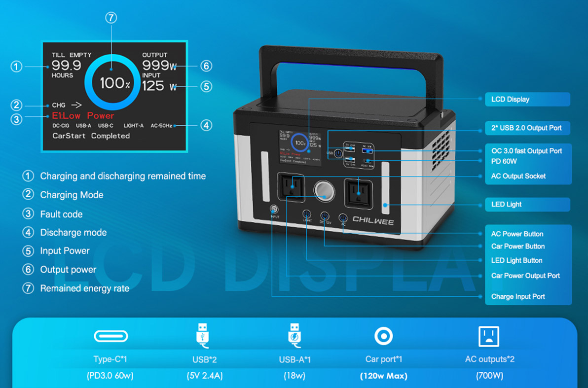 3. Caractéristique du produit et application du générateur solaire intelligent 700W pour le chargement de l'éclairage de secours